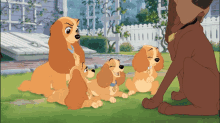 - Леди — изящная и добрая кокер-спаниель, которая живёт в уютном доме с любящей семьёй. Её судьба меняется после встречи с уличным псом Бродягой, что приводит к множеству приключений. Голос Леди в русском дубляже принадлежит Татьяне Шлычковой.